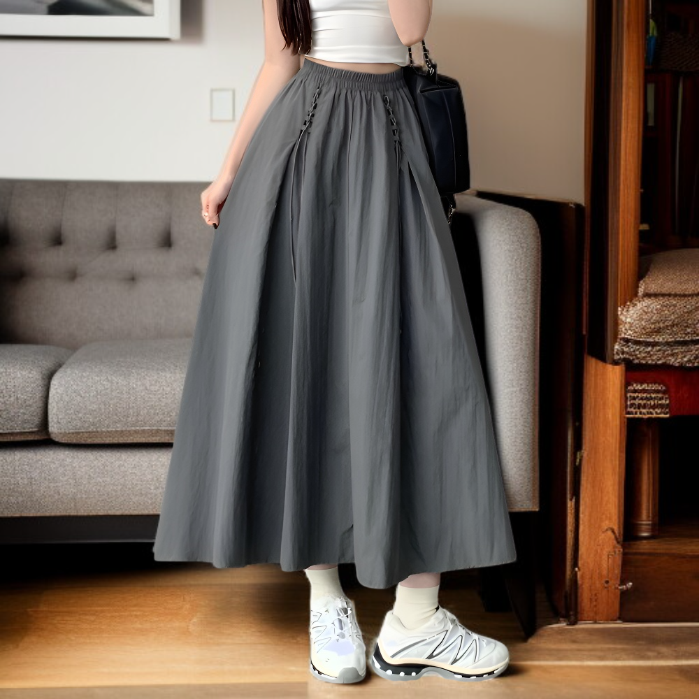 レディースカジュアルルーズワークスカート ハイウエスト細見えAラインスカート