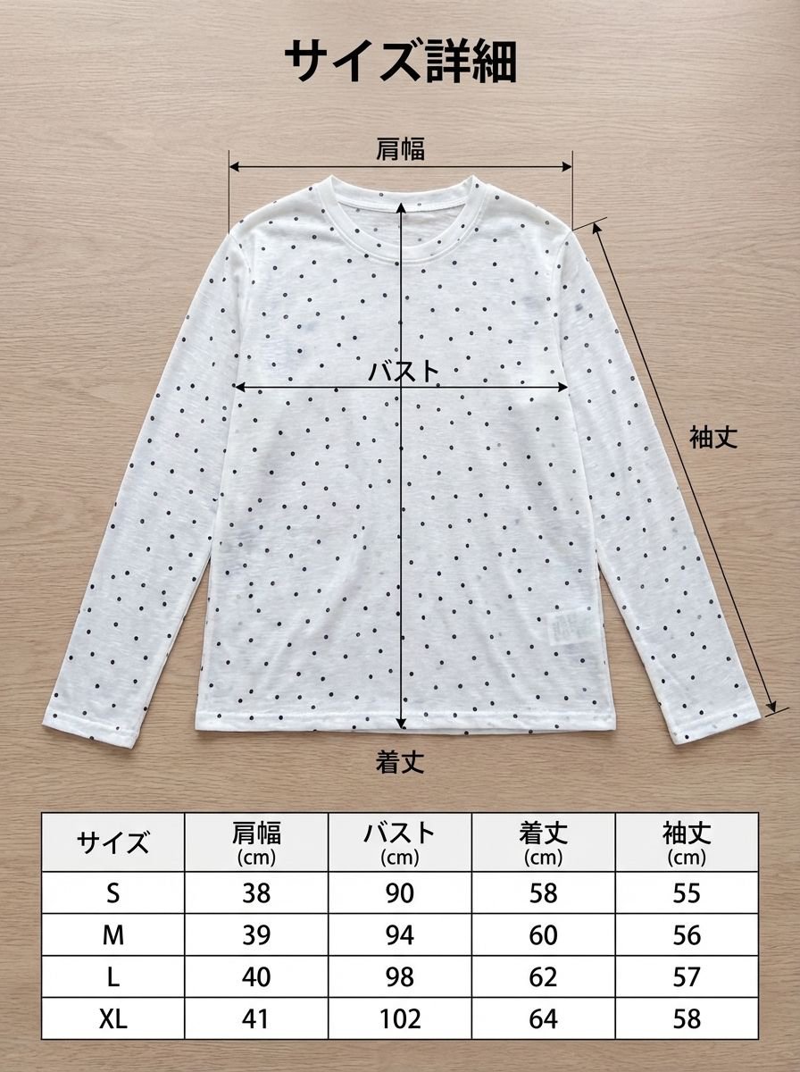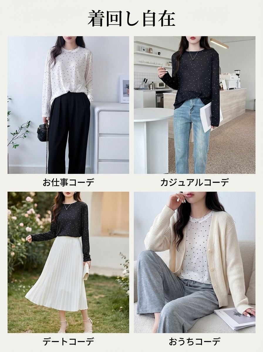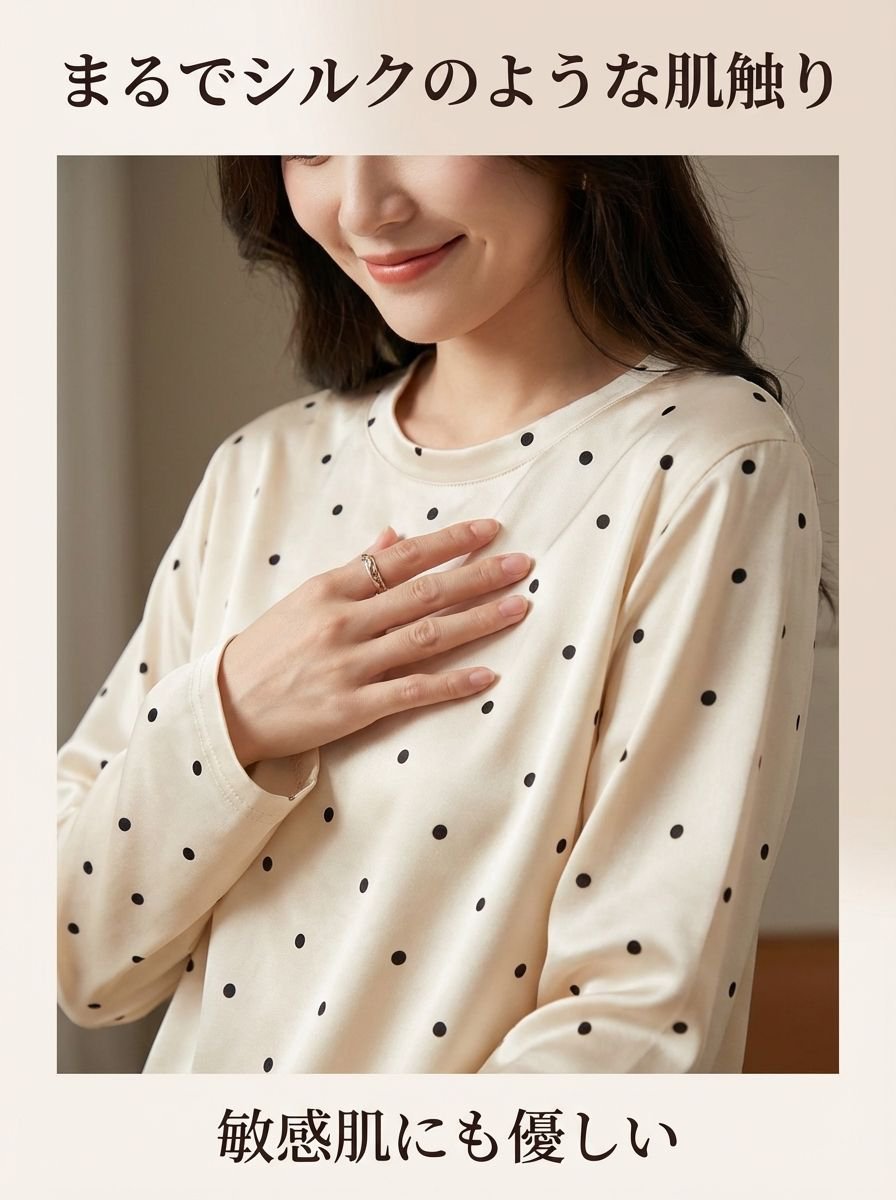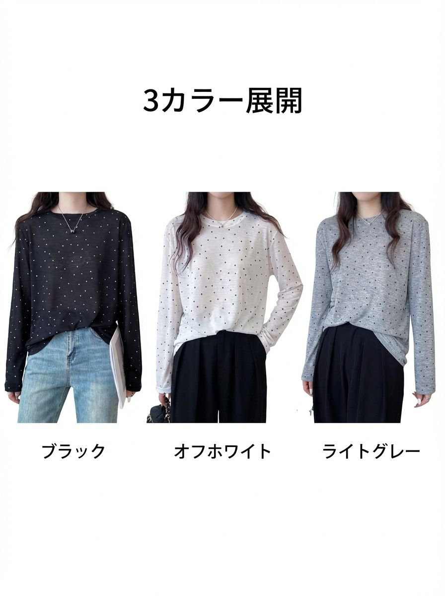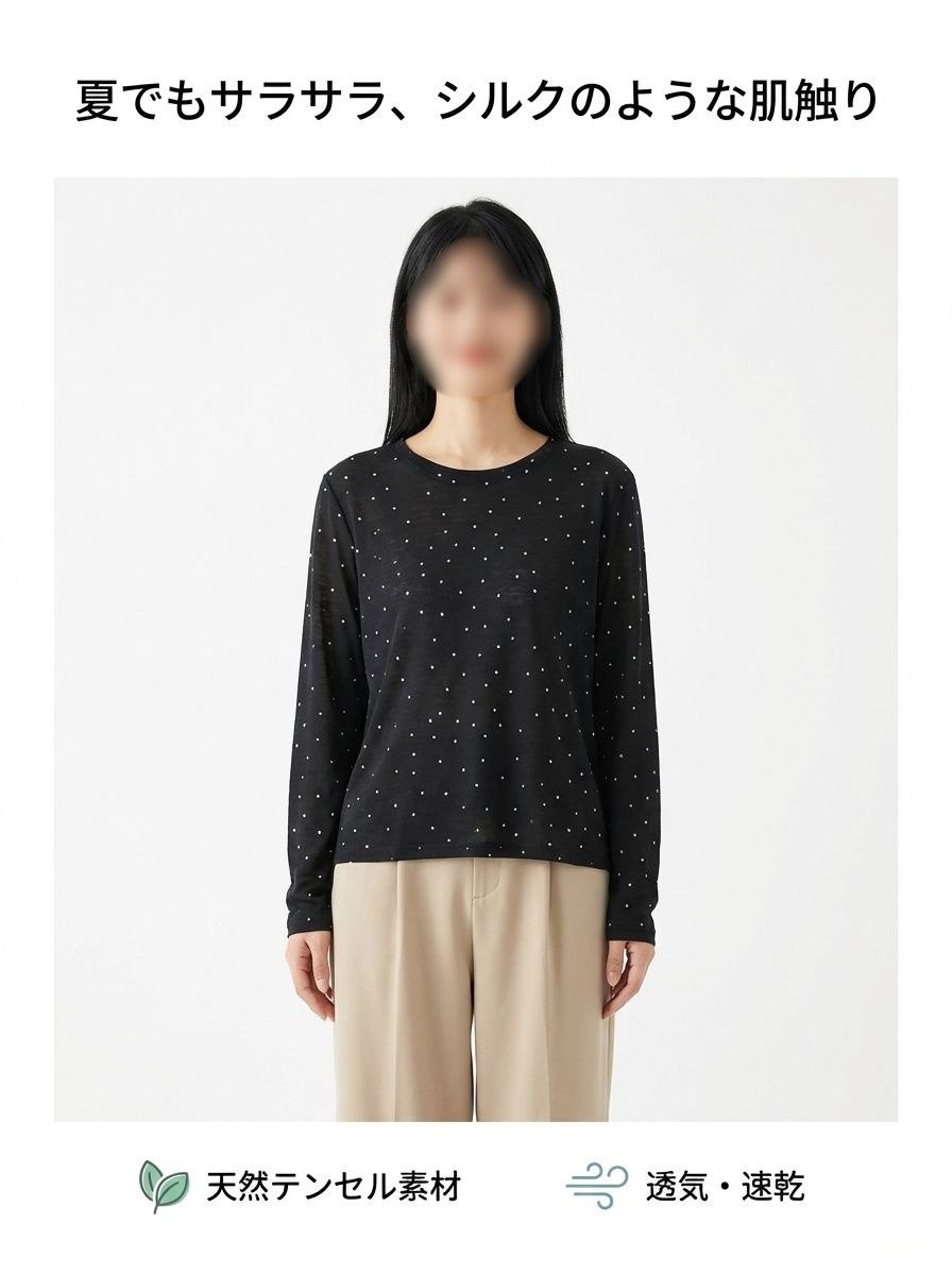 レディースドットテンセルマスクTシャツ長袖インナー