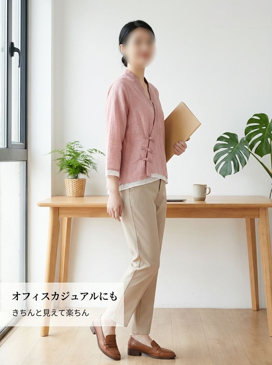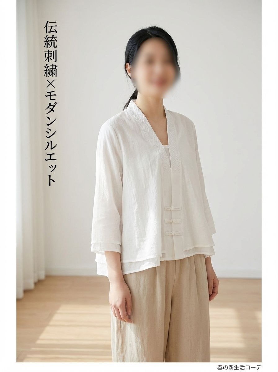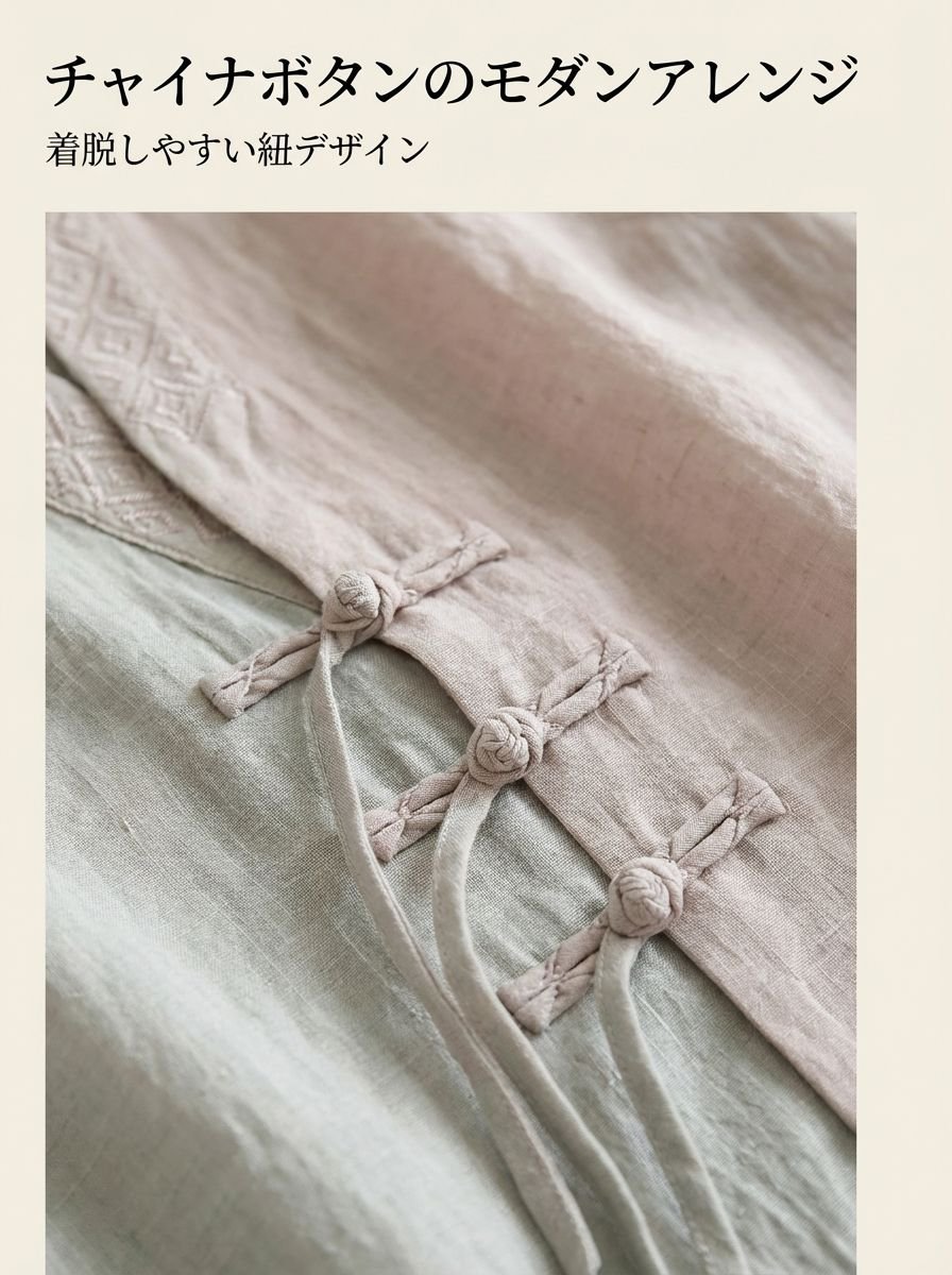 ● 斜め襟とチャイナボタンが個性的で、伝統的な美しさと現代的なファッション性を融合しています。
